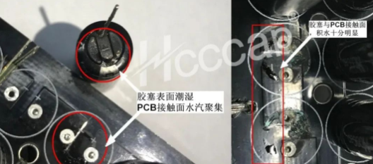 电容胶塞和PCB表面水汽凝结图1